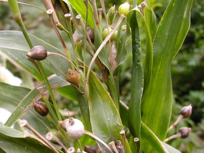 【右】ジュズダマです。数珠(じゅず)は仏・菩薩を礼拝する時に手にかける用具です。昔の子供はこれに糸を通して数珠作って遊びました。