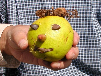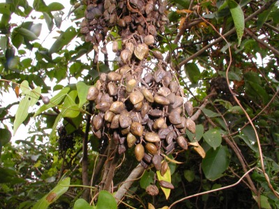 【左】ハゼの実です。この実から高級ロウソクつくります。かぶれますから木の実工作には使わないでください。