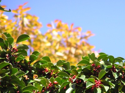 【左】手前がクロガネモチ、その後ろが未だ葉を落としてないコナラです。色のバランスがよかったです。