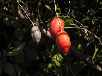 【右】カラスウリの一番きれいな時です。カラスウリの薬用について話が出ました。根を利尿、淨血、催乳として用いるそうです。