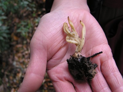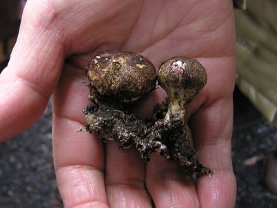 【右】ツブラジイの近くにヒメカタショウロが生えていました。このキノコは少し毒があるといわれています。