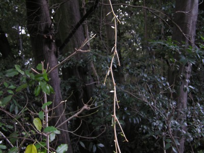 【右】ツルグミです。枝が下向きに出ているのは何故でしょう。木によじ登るためでしょうか。