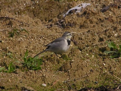 【左】ハクセキレイが畑に降りて何かを食べていました。