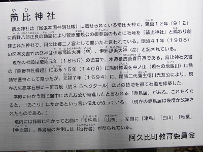 【右】箭比神社の入り口に説明の看板があります。「おこり」について、下の方に説明があります。