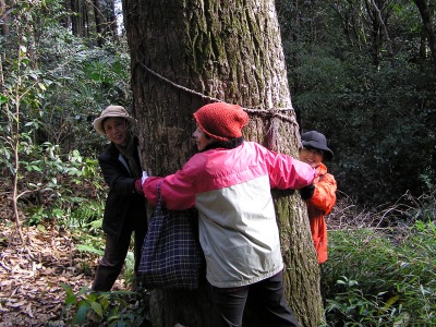 【右】直ぐ近くにヤマモモの大木がありました。4人では足りませんでした。