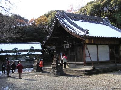 【左】本殿にまだ雪が残っていました。皆さんで今年最後のお願いをしました。