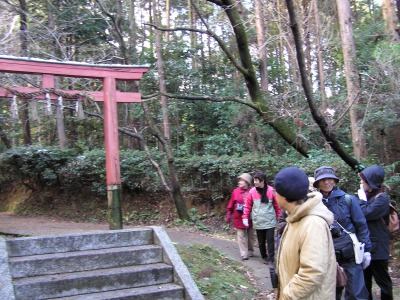 【右】赤い鳥居をくぐると「おこり」にかかるという言い伝えがあるので、皆さん鳥居をくぐらずに降りました。おこりは怒りでしょうか?