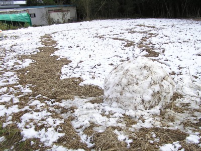 【左】雪ダルマが作ってありました。右からぐるぐる回って戻ったのが分かります。