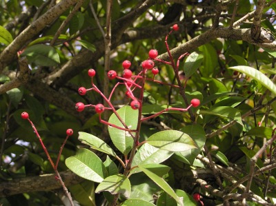 【右】カナメモチの実が赤くなっていました。カナメモチはモチノキ科ではなくバラ科です。