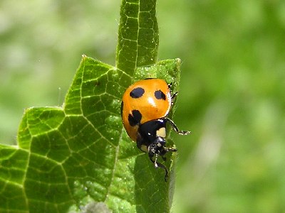 【右】ナナホシテントウがアブラムシを食べにきました。