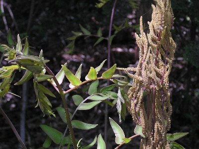 【右】ゼンマイ、実葉(胞子がついた右の葉)と裸葉(胞子が付いていない左の葉)です。