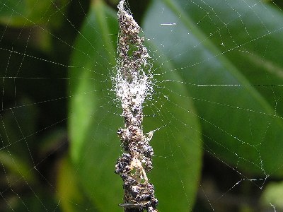【左】ゴミグモがごみの中に隠れています。分かりますか。