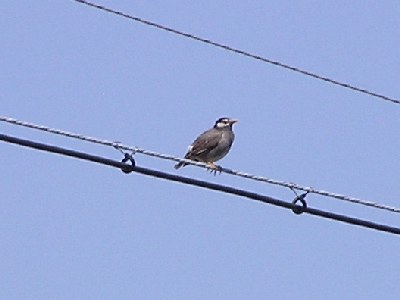 【右】ムクドリが電線に止まって挨拶を見ていました。