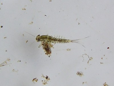 【右】カゲロウは藻類をたべて生きています。ユスリカ、ガガンボ、カゲロウは魚の餌などになります。