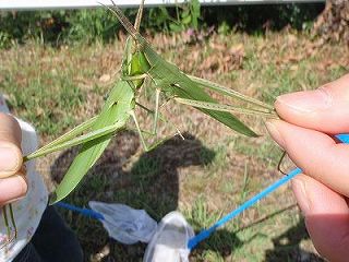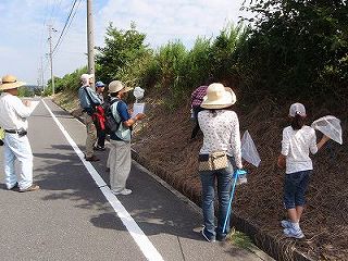 【左】始めのあいさつ 【右】道端の草地にショウリョウバッタがたくさんいました