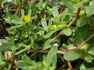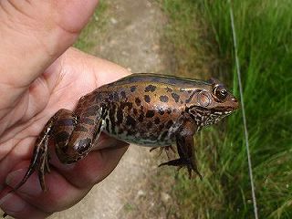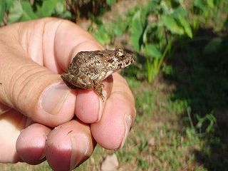 やっとつかまえた小さなヌマガエル スベリヒユ ツユクサ