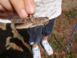 左&中…同じカエル=ヌマガエル 右…クルマバッタ(?)