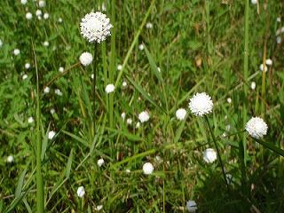 【左】満開状態のシラタマホシクサ…湿地にて 【右】行きと同じ道を帰って、終わりのあいさつ