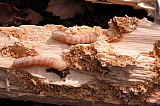 【右】たくさんのカミキリムシの幼虫が見つかりました。