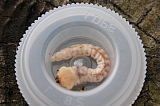 公園に到着したら子供たちは生き生きしています。直ぐにも行きたい気持ちを抑えて簡単な注意を聞いてから取り掛かりました。どんなものが見つかるか「宝物」でも探すわくわくした気持ちで始まり、発見の楽しさに時のたつのを忘れ、あっという間に終了を迎えました。そんな中、子供たちは、硬い木にはカミキリムシ、少し柔らかくなった木にはクワガタなど朽木の進み具合により生活している虫の違いを発見してくれました。今回はカミキリムシの幼虫多く見られたれました。1本の朽木からいくらでも見つかり、まるでカミキリのアパートがあるみたいでした。大きいものになると体長が5センチもありました。ちなみに、山奥の人たちは、燃料して使う薪割をした時に出てきたカミキリムシの幼虫を重要なタンパク源として食べていたそうです。(これは本当においしいです)