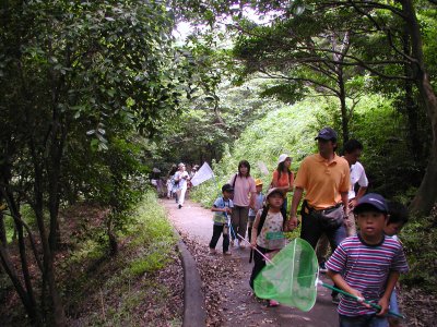 【右】佐布里池の周りの森に虫を探しに入っていきました。
