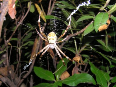 【右】ナガコガネグモの赤ちゃんがえさを狙って、森の縁に陣取っていました。