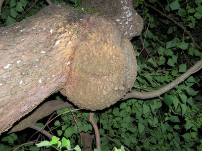 【右】これは何だー!!蜂の巣?。いやナンキンハゼに付いたガン腫です。(木の病気です)