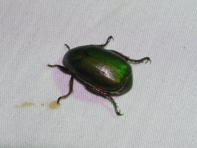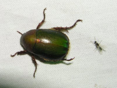【右】アオドウガネみたいです。カナブンの幼虫をツチバチの仲間がたくさん食べてくれます。ツチバチは先月19日のHPにでています。