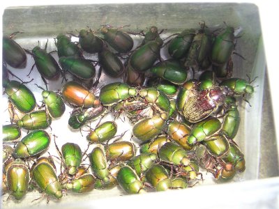 【左】戻ると、カナブンの仲間がたくさん来ていました。