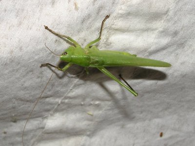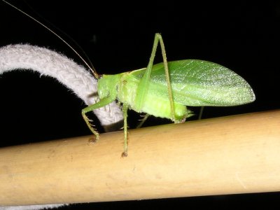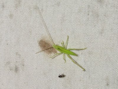 陽気は風も無く、月も出ていない日となり、灯火採集には絶好の日になリました。もっとよかったのは、この日は東海市で花火大会が行われ、そちらに赴いた人が多かったのか、参加者が少なかったことです。特に、虫の音は静かな条件で聴くのが一番いいです。今回、聞くことができた虫は、エンマコウロギ、ミツカドコオロギ、オカメコウロギ、ウマオイ、アオマツムシ、マツムシ、カネタタキ、ヤブキリ、スズムシなどです。気候が蒸し暑い位でしたので虫さんたちは元気に鳴いていました。