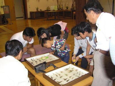 【左】まず、梅の館で鳴く虫の標本を事前に見ました。