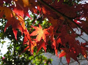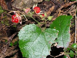 【左】紅葉が一番いい季節でした。 【右】食べごろのフユイチゴ実っていました。