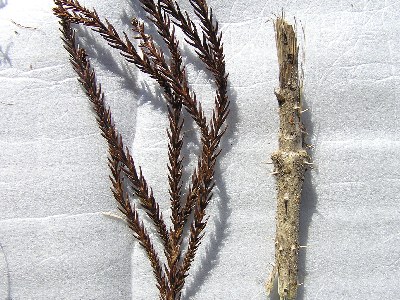 【左】ぬけがら、スギの球果。