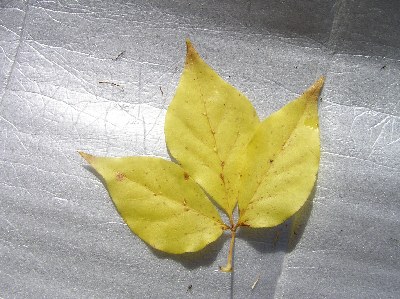 【右】落ち葉、タカノツメ(イモノキ)