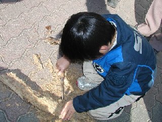 【左】キノコが食べて少し柔らかくなった木です。クワガタの食べごろだと思うが何かいないかな。 【右】カシラダカが死んでいました。何で死んだのかみんなで考えましたが分かりませんでした。