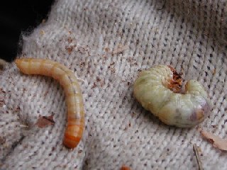 【左】クワガタの幼虫です。   【右】コクワガタのお父さんです。小型タイプみたいです。