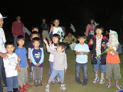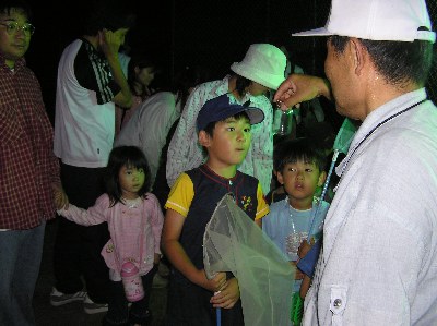 【左】子供たちがヘイケボタルを見ています。