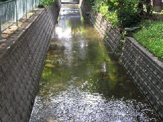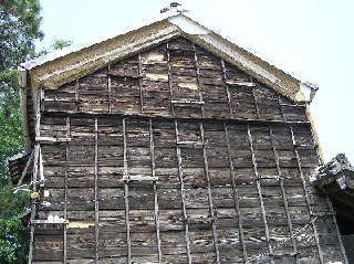 【左】古い倉庫です。火災の時に板壁が取り外せるようになっていました。 【右】町の中心を流れている日長川です。以前は蛇行していたそうです。
