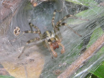 【左】ユミアシゴミムシダマシが樹皮にいました。
