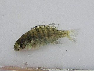 【左】テッポウエビです。ハサミでパチンパチンと音を出して威嚇します。    【右】クロダイの稚魚も来ていました。