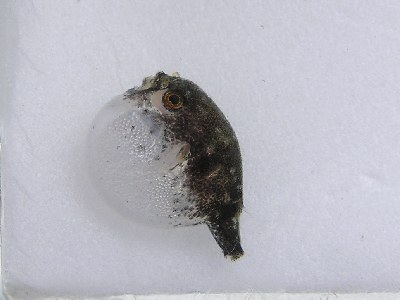 【右】フグが怒ってお腹を膨らませました。