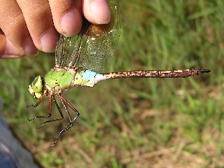 【左】大祥院前の小さな水溜りにギンヤンマが来ていました。これはお父さんです。