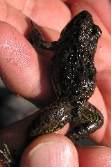 【左】大祥院前の小さな水溜で大きなタモを振っています。