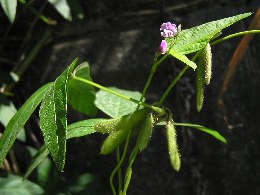 【右】ツルマメ。ダイズの親戚です。ダイズはこれを改良したという人もいます。試食してみませんか。
