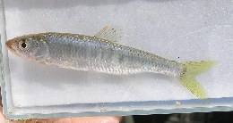 【右】オイカワ。琵琶湖からの稚アユ放流にまじって各地に広がったといわれています。