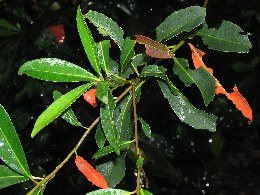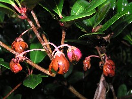 【左】左、ハマヒサカキの雄株。右雌株で花芽と紫色の実が成っています。植栽されたと思われます。
