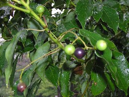 【右】クスノキの実が成熟するにしたがって色変わりするのが見られました。