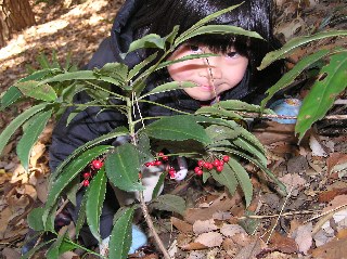 【左】マンリョウに美味しそうな実がたくさん付いていました。
