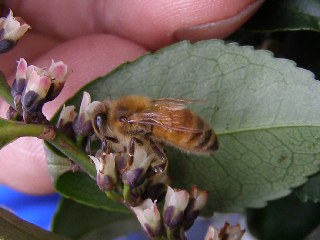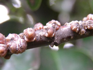 【右】ヒサカキについていました。ルビーロウムシでしょうか。