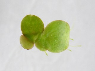 【右】ウキクサです。唄では「花が咲かない」と歌われていますが、顕花植物ですから花が咲きます。